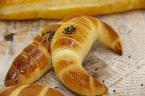 正宗的牛角包要有特別完整的月牙型,用大火烘烤至外皮染上咖色、酥脆堅挺,內(nèi)里留住了水分、濕潤輕盈有嚼勁。