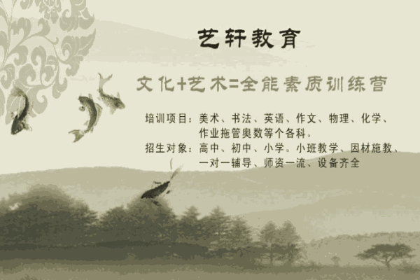 藝軒教育由專(zhuān)職教師對(duì)一個(gè)學(xué)生進(jìn)行的綜合輔導(dǎo),包括學(xué)習(xí)方法、學(xué)習(xí)態(tài)度、課程歸納、重點(diǎn)總結(jié)、疑問(wèn)解答、心理指導(dǎo)等多方面。整個(gè)個(gè)性輔導(dǎo)的過(guò)程,就是糾正學(xué)生不良學(xué)習(xí)方法的過(guò)程,能充分調(diào)動(dòng)他們自主學(xué)習(xí)的積極性。藝軒教育培養(yǎng)學(xué)生的學(xué)習(xí)興趣,通過(guò)學(xué)新教師有計(jì)劃、有步驟地引導(dǎo),使之由被動(dòng)學(xué)習(xí)向主動(dòng)思考轉(zhuǎn)變,態(tài)度的轉(zhuǎn)變,決定了對(duì)一個(gè)學(xué)生的終輔導(dǎo)成效。心動(dòng)不如行動(dòng),如果您對(duì)我們藝軒教育感興趣的話,那就拿起您的手機(jī)撥打我們的加盟熱線吧,藝軒教育歡迎您的加入。