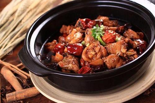 阿麗雞公煲融合了川渝餐飲的不同特點(diǎn),由50多種上等香料,中草藥和調(diào)味品按嚴(yán)格科學(xué)的比例配制而成。再經(jīng)過(guò)密封發(fā)酵,制作成了目前具備經(jīng)典獨(dú)特口味的雞公煲系列醬料。用專(zhuān)用雞公煲醬料對(duì)上等仔雞進(jìn)行腌制,并在專(zhuān)用煲中按客人的不同口味和要求現(xiàn)場(chǎng)燒制成各種口味。