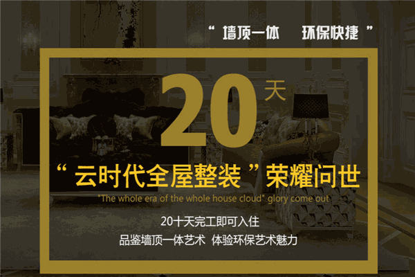 2009年,在中國嘉興,以云時代董事長周金龍為主的云時代團隊歷經(jīng)4年的市場探索和考察,確定了墻頂一體化裝修的環(huán)??煅b模式必將在將來改變?nèi)藗兊募揖由?。帶著“開啟全屋整裝時代”的夢想,耗資近8000萬的資產(chǎn)投放全屋整裝這個項目,在研發(fā)的過程中突破重重難題,勇于創(chuàng)新,在很多技術(shù)上得到了突破,并獲得了國家的相關(guān)證書。