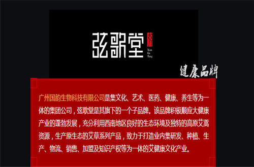 廣州國(guó)韻生物科技有限公司于2013年12月27日成立。是一家涵蓋健康養(yǎng)生、文化教育、傳統(tǒng)農(nóng)業(yè)的集團(tuán)性運(yùn)營(yíng)公司。自成立以來發(fā)展迅速,業(yè)務(wù)不斷在壯大,目前旗下?lián)碛邢腋杼?、弦歌文化以及八爺農(nóng)場(chǎng)三大板塊。目前以高原艾產(chǎn)品為主導(dǎo),是一個(gè)引領(lǐng)人們正確思維方式和健康生活方式的平臺(tái)。